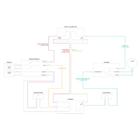 The Immortal is an instillation that attempts to connect obsolete life support machines together in a mutually sustaining closed circuit. My responsibilities ranged from developing the matrix of connections, why and how, between machines to reverse engineering and where appropriate modifying the life support machines.